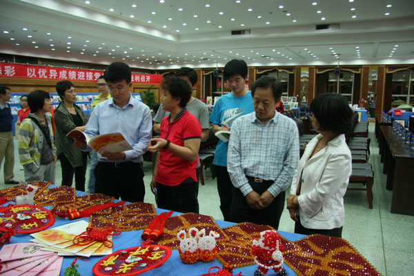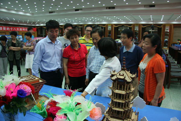 5月25日夜,我會副理事長兼秘書長楊文莊來到精心布設的會場,對展示出的“新時代社區” 、“新概念家庭”的各類精美作品、照片贊不絕口,饒有興致的聽取基層工作人員介紹創建活動開展情況以及展品收集制作過程中的感人故事,并同市區領導及工作人員合影留念。