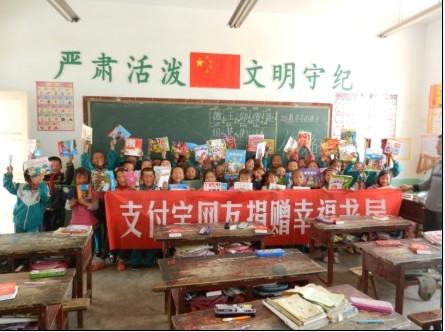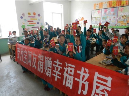2012年5月底,利用支付寶用戶的線上捐款,中國人口福利基金會向甘肅涇川縣的三所小學捐建了幸福書屋。這三所小學分別是蘇家河小學、伍仲小學和蓋郭小學。三所書屋涵蓋了價值9000元的圖書共1629冊,內容均是深受孩子們喜愛的故事書、名著、兒童百科和工具書等。此次活動受到了三所學校校長的大力支持,其中伍仲小學承擔了接收三所小學的圖書和圖書分發工作。香港浸會大學甘肅可持續發展服務團為此次活動提供了前期的學校推薦和活動過程中寶貴的志愿服務。