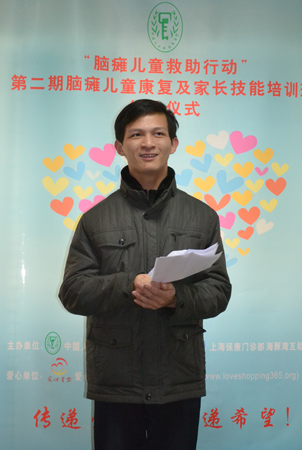 安徽阜陽公益網創辦人申治海先生曾經也是一名腦癱患兒,他用自己的親身經歷鼓舞現場的患兒及家長,讓他們重拾生活的信心