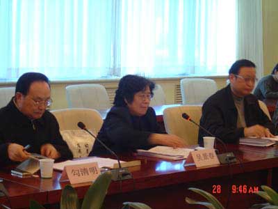 | 第五屆中華人口獎組委員會主任、原中國人口福利基金會常務副會長吳景春(中)報告組委員會初選、復選候選人的情況,左為中紀委駐人口計生委紀檢組組長勾清明,右為人口計生委副主任兼中國人口學會常務副會長王國強。 |