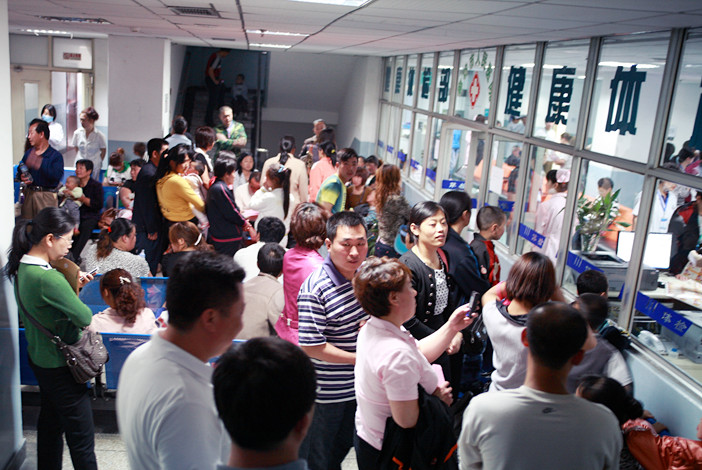 圖為篩查室外等候的患兒及家人