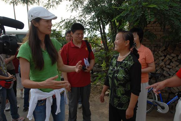 圖一:幸福工程救助過的貧困母親陳秀芳在村口迎接西行隊員