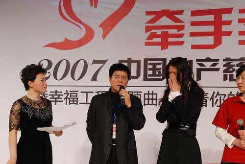 圖3:參與、組織西部行的幸福工程組委會辦公室副主任葛振江講述西部行中發生的感人故事,馬艷麗不禁感慨落淚