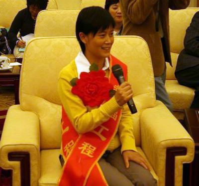 圖二:來自四川省成都市龍泉驛區(qū)的方從蓉更為自豪地講述了一個被生活困擾的山村貧困母親,在“幸福工程”的救助下,脫貧致富成長為一個被3000多村民擁戴 “村官”的經(jīng)歷。八年前,這個家庭的年收入還不足2000元,而現(xiàn)在已突破4萬元,成為了遠近聞名的小康戶,方從蓉也成為一名光榮的共產(chǎn)黨員、村婦聯(lián)主任。