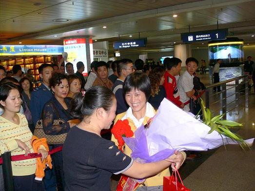 圖二:龍泉驛區計生局、計生協會領導,鎮黨委領導到機場迎接方從蓉