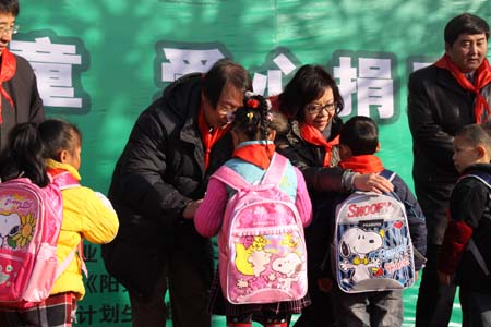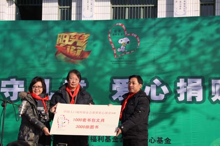 News為關(guān)愛農(nóng)村留守兒童、支持農(nóng)民工子女教育,中國人口福利基金會霽霽愛心基金向重慶市梁平縣力帆光彩小學(xué)捐贈了1000套書包文具和3000冊圖書,并于