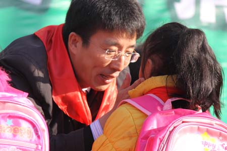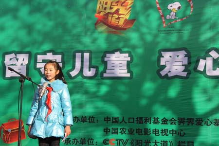 中央電視臺農(nóng)業(yè)頻道副總編輯詹新華說:“我也是農(nóng)民的兒子,你們現(xiàn)在有黨和政府的關(guān)懷,有社會的關(guān)愛,一定要好好學(xué)習(xí),奮發(fā)圖強(qiáng),你們的明天會更加美好!”