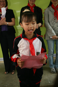 林逢鎮東往小學校長黃河代表學校對于中國人口福利基金會霽霽愛心基金的善舉表示感謝,全校老師將以此為動力努力工作,做人民滿意的教師;全體學生要用優異的成績報答社會的關愛之情,不辜負社會各界的殷切期望。