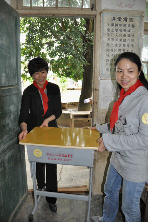 霽霽企業代表及領導嘉賓親自為學校教室更換新桌椅