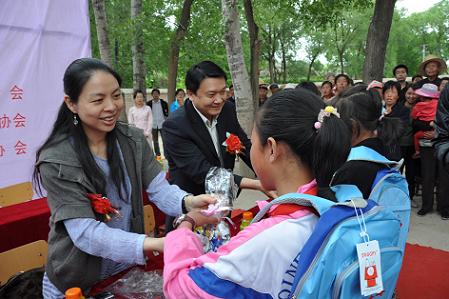 捐贈儀式上,葛振江副秘書長介紹了霽霽愛心基金成立以來開展的活動,并教導學生們,要好好學習,以此來感謝社會上愛心人士的奉獻與捐助。陳穎女士代表霽霽企業講話,她表示,霽霽愛心基金一直致力于向經濟相對落后地區的孩子們提供力所能及的幫助,希望這些承載著愛心的桌椅和書包,能為學生們的學習條件帶來一些改善,希望這些小公仔,能讓孩子們在過早地體會到生活艱辛之余,也感受到屬于童真時代的快樂。