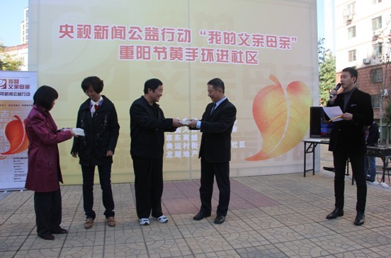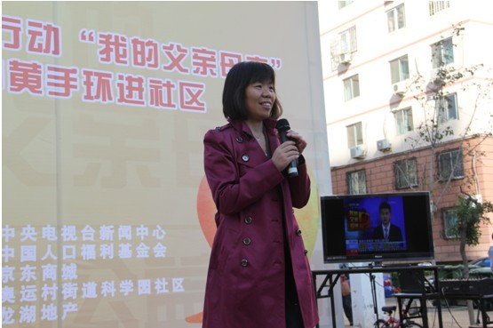 關愛阿爾茨海默病老人為給失智老人奉獻愛心,同時喚起社會各界對失智老人的關心,中國人口福利基金會聯合中央電視臺、京東商城于10月23日在北京科學園南里六區舉行黃手環進社區活動暨全國黃手環發放啟動儀式,儀式由央視主持人,“我的父親母親”公益活動宣傳大使魯健主持,中國人口福利基金會藍野秘書長出席活動并發表講話。