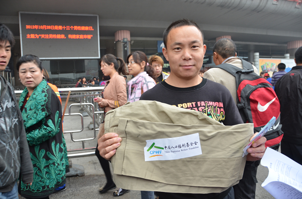 今年10月28日是第十三個男性健康日,今年男性健康日的主題是“關注男性健康、構建家庭幸?!?。因此,今年“你在他鄉還好嗎”活動的主題為“服務流動人口,關注男性健康,促進服務均等,構建家庭幸福,喜迎黨的十八大勝利召開”,以宣傳維護流動人口合法權益,促進流動人口基本公共服務均等化以及男性健康科普知識為主要內容,通過政策法規宣傳、健康義診服務、問卷調查等活動,大力營造關注流動人口、關注男性健康的良好社會氛圍。中國人口福利基金會還向流動人員現場發放了200多件衣物,受到流動人口、農民工朋友的普遍歡迎。