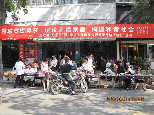 510日“母親節(jié)”這一天,也是幸福工程全國組委會倡導的第十三個“救助貧困母親活動日”,蕉城區(qū)政府門口人潮涌動、熱鬧非凡。為了更好落實幸福工程全國組委會下發(fā)的《關(guān)于開展第13屆母親節(jié)暨幸福工程救助貧困母親行動活動日的通知》精神,市、區(qū)計生協(xié)會、區(qū)計生局、區(qū)衛(wèi)生局等部門聯(lián)合在蕉城區(qū)八一五中路繁華路段開展以“救助貧困母親,建設(shè)幸福家庭,構(gòu)建和諧社會”為主題的紀念第13屆“母親節(jié)”暨“幸福工程救助貧困母親行動活動日”的宣傳服務活動,活動采取街頭宣傳、發(fā)放宣傳單、饋贈宣傳品、展出宣傳展板、咨詢義診等形式,秉承幸福工程“三治”方針,心系貧困母親真情服務,廣泛宣傳幸福工程的救助成果,展示幸福工程在推進人口計生工作,關(guān)愛母親、關(guān)愛女孩、建設(shè)文明幸福家庭、構(gòu)建和諧社會等方面的成果,擴大幸福工程的知名度和影響力;弘揚“扶貧濟困、回報母愛”的社會風尚,宣傳幸福工程的宗旨、目的、意義、模式,向關(guān)心支持幸福工程的社會各界匯報幸福工程的發(fā)展狀況,并向全社會宣揚倡導公益、宣傳慈善、愛心參與、共建和諧的理念,將關(guān)愛貧困母親、熱愛祖國母親的公益理念寓教其中,以逐步加深并擴大幸福工程在公眾心目中的印象,從而使公眾意識到自己的社會責任與義務,自覺地支持幸福工程、關(guān)愛貧困母親,把“母親節(jié)”暨“幸福工程救助貧困母親活動日”這一公益活動最大限度地進行宣傳與推廣,提高幸福工程的知曉率。
