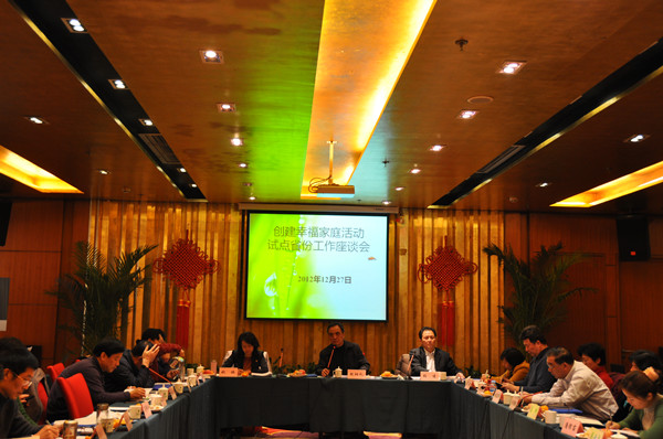 News2012年12月27日上午,為了貫徹全國創建幸福家庭活動經驗交流會議精神,深入開展創建幸福家庭活動(以下簡稱創建活動),國家人口計生委、中國計劃生育協會、中國人口福利基金會在北京市召開創建幸福家庭活動試點省份工作座談會,學習貫徹黨的十八大精神,了解各試點省(區、市)創建活動進展情況,聽取各地下步工作打算和對創建活動的意見、建議,進一步推動創建活動試點工作深入開展。國家人口計生委宣教司司長張建、中國計劃生育協會秘書長姚瑛出席會議并發表講話。中國人口福利基金會理事長趙炳禮主持會議。