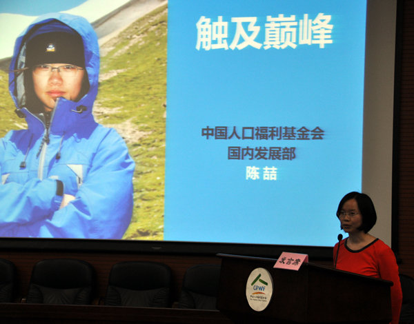 人基會馮冠楠、李爽、陳喆分別作了題為《為生民立命——慈善之我見》、《我的成長之路》、《觸及巔峰》的主題演講,從不同側面和親身體驗,為大家講述了人基會青年同志的心路歷程,展現了良好風貌,體現出團結、和諧、奮進、陽光的團隊精神和“樂活、勤奮、奉獻”的工作理念。