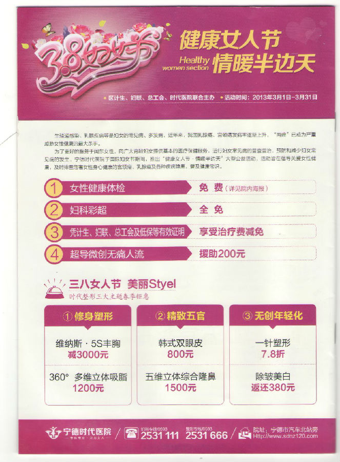 今年“三八”節期間,蕉城區各鄉鎮(街道)計生協會、幸福工程項目辦積極組織幸福工程受助母親參加由區計生局、區婦聯、區總工會聯合在寧德時代醫院舉辦的“健康女人節?情暖半邊天”兩癌篩查活動,旨在關愛為國策為家庭默默奉獻的農村計生貧困母親,提高農村貧困母親的自我保健意識和生活質量,使她們能“無病早防,有病早治”,遠離宮頸疾病和乳腺疾病的危害,為貧困母親筑起健康“防護墻”,切實提升廣大農村貧困母親的健康指數和幸福指數。