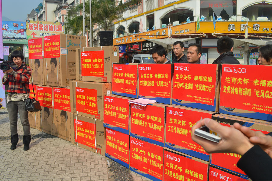 幫助困境母親,建設幸福家庭2013年4月10日上午, 由蕉城區計生協會與計生局聯合主辦,吉德電器、艾美特電器、TCL集團等企業協辦的“百萬愛心,匯聚計生,共建幸福家庭”大型捐贈公益活動在長興城廣場隆重舉行,寧德市政府副市長周秋琦、市政府副秘書長盧秋、市人口計生委主任林江、市計生協會常務副會長林學初、市人口計生委宣教科科長鐘興偉、蕉城區政府副區長蘭挺佳、區計生協會會長湯春景、區計生協會常務副會長林菊生等市、區領導及寧波吉德電器有限公司福建中心總經理張先文、蕉城區百匯電器商場總經理陳秀喜出席了捐贈儀式,并為20位“十佳幸福母親”免費贈送全自動洗衣機10臺、油煙機和TCL彩電各5臺,為50位來自全區16個鄉鎮(街道)的“幸福母親” 免費贈送電風扇各一臺,活動還向全區所有貧困家庭發放購買家電產品的“幸福工程惠民卡”12000張,總價值百萬元,每個獲贈的貧困家庭可享受400-1000元的購物優惠,同時還享受國家節能補貼、三包服務,所有優惠家電明碼標價并提供送貨上門,真正讓符合生育政策的計生家庭得到實惠,實現了“扶助計生家庭,共享人口紅利”的活動目的。70位身披“幸福母親”紅色綬帶的幸福母親喜氣洋洋,她們中有16位曾經接受過幸福工程的救助,7位入選“市級十佳母親”,她們分別是赤溪鎮東邊村的養牛狀元傅巧斌、七都鎮貝河村白玉蘭種植大戶黃月華、霍童鎮興賢村“霍桐茗茶”女老板黃巧周、蕉南街道荷園社區鮑魚養殖大戶傅巧平、漳灣鎮鰲江村上岸連家船漁村脫貧母親鄭維嬌、飛鸞鎮向陽里村養豬大戶雷愛娟、石后鄉下竹洋村金銀花種植大戶張小英……這些昔日的貧困母親現已成為赫赫有名的致富帶頭人,她們是“幸福工程”活動中綻放最燦爛的“幸福花”,她們每個人的臉上都洋溢著笑容,每個人的心中都涌動著暖流。