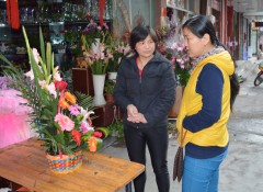 圖片三:謝美瓊(左一)在向顧客介紹鮮花籃。