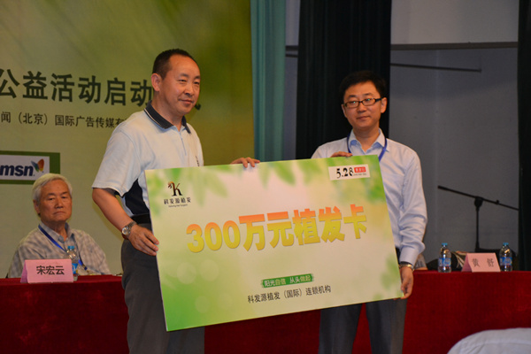 啟動儀式上,科發源植發(國際)連鎖醫院通過我會向600位貧困脫發大學生捐贈價值300萬元的免費植發卡,希望為他們帶來健康和自信。