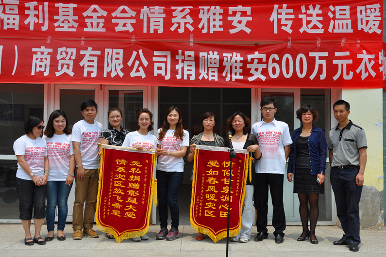 News2013年4月20日,四川省雅安市蘆山縣發生7.0級地震,累計造成四川省內200余萬人受災。地震發生后兩天,上海迅銷(中國)商貿有限公司與我會取得聯系,向雅安地震災區捐贈價值600余萬元的衣物,以解災區人民之需。