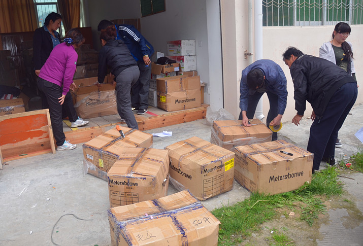向朗縣一中學(xué)生分發(fā)捐贈(zèng)服裝