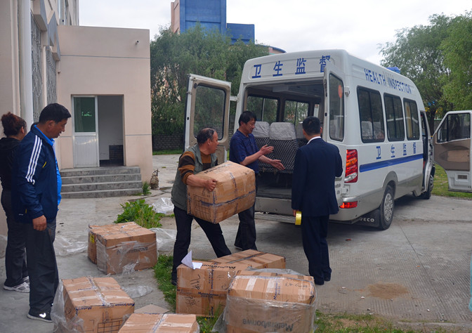 林芝地區(qū)計(jì)生局派車將物資分發(fā)至受助學(xué)校
