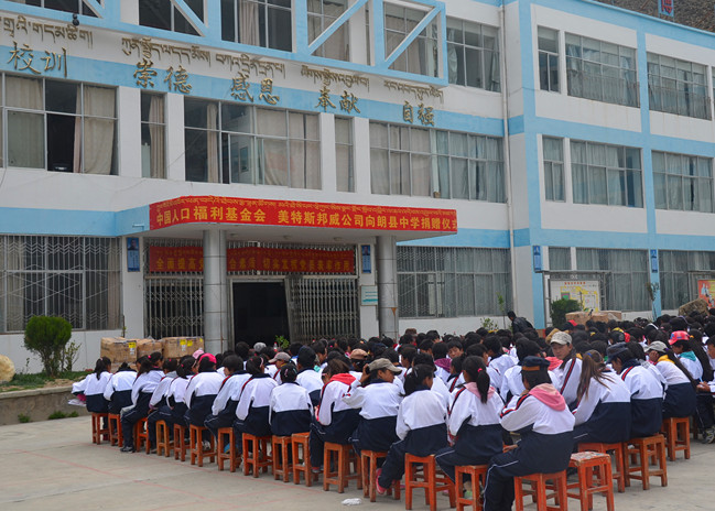 2013年5月31日上午,中國(guó)人口福利基金會(huì)攜手上海美特斯邦威服飾有限公司捐贈(zèng)西藏自治區(qū)林芝地區(qū)價(jià)值50萬(wàn)元服裝的捐贈(zèng)儀式在朗縣一中舉行。