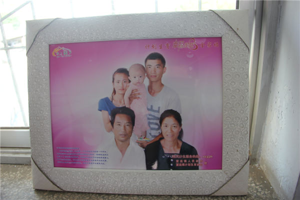 銀川市永寧縣望遠鎮(zhèn)人口學(xué)校窗臺上擺放的計劃生育幸福家庭照片