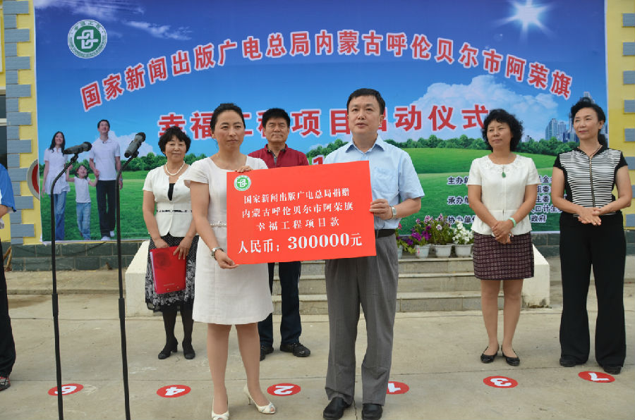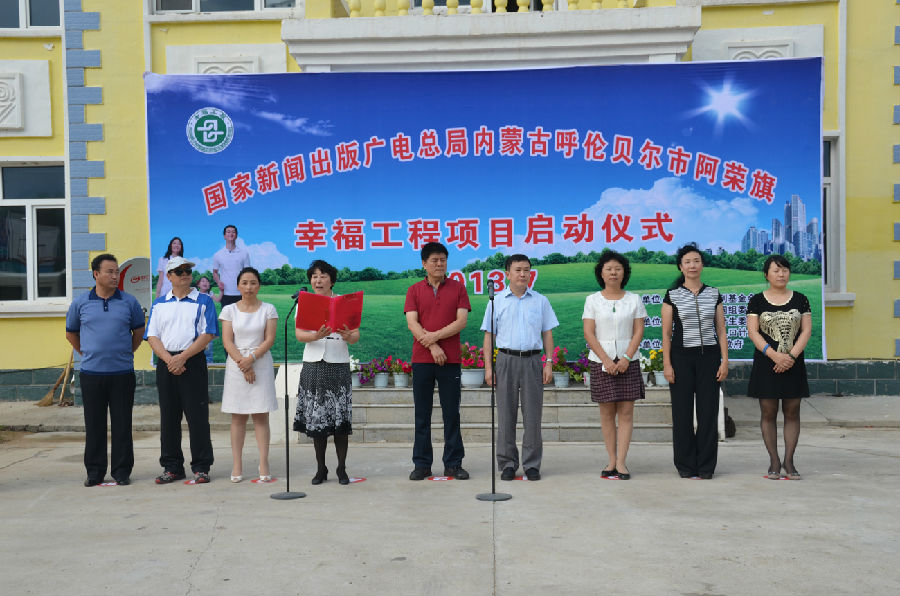 News7月29日,國家新聞出版廣電總局結對救助內蒙古阿榮旗“幸福工程”項目啟動儀式在呼倫貝爾市阿榮旗那吉鎮那吉村舉行。中國人口福利基金會副秘書長葛振江、國家新聞出版廣電總局直屬機關黨委副書記瞿家茂、呼倫貝爾市人口計生委副主任王艷梅、廣電總局13位捐贈代表、阿榮旗黨政領導以及受助母親代表參加了啟動儀式。此次我會從廣電總局2013年捐款中劃撥30萬元,地方政府配套30萬元,資助阿榮旗那吉村29位貧困母親從事反季節蔬菜大棚種植。