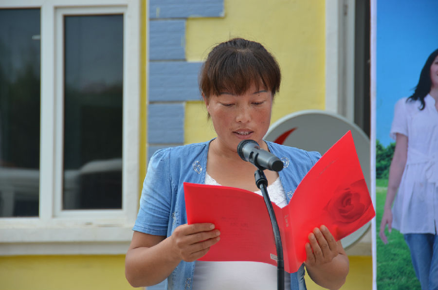 受助母親代表發表感言。她說到,因為公婆年邁多病,家中生活一直很艱難。在旗“幸福工程”項目辦的幫助下,她不僅學到了蔬菜大棚種植技術,還獲得了項目啟動資金。一定不會辜負大家的期望,把握這次機會,科技致富、勤勞致富,早日帶領家庭擺脫貧困。