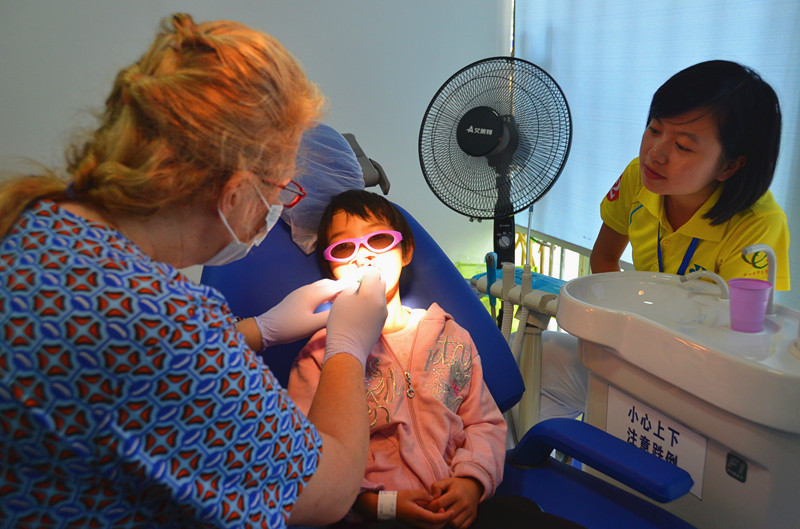 口腔清潔醫生Dorothy為患兒清潔牙齒