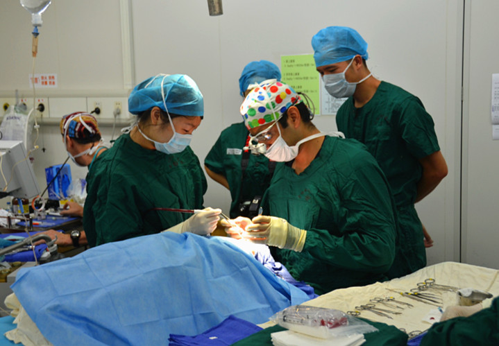 “幸福微笑”醫療隊外科醫生Gagan為患兒實施手術