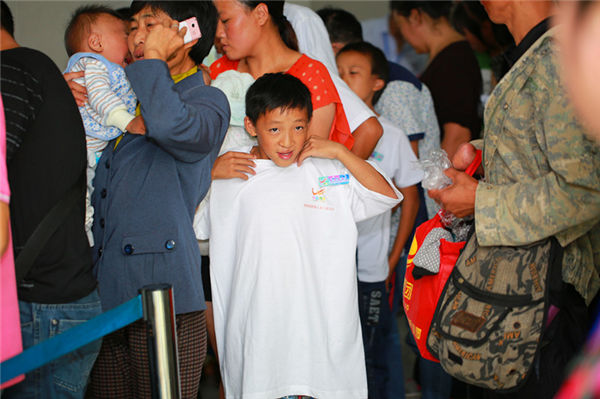 每位患兒都將得到一件“幸福微笑”活動紀念T恤