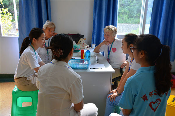 首都醫科大學何電博士(右一)赴活動現場對“幸福微笑”活動進行采訪和中期評估資料收集