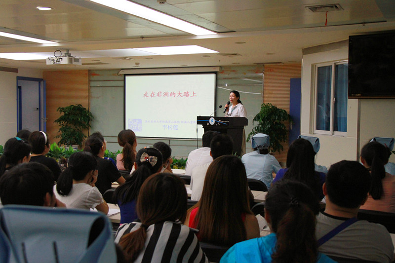 醫療隊護士長、參加援非一年的溫州醫學院護士長李松蓮為遵義市第一人民醫院上百名醫務人員作講座
