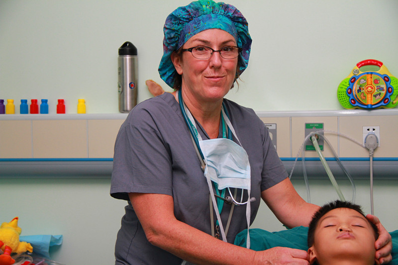 醫療隊注冊麻醉護士Judith在手術復蘇室照顧術后的患兒