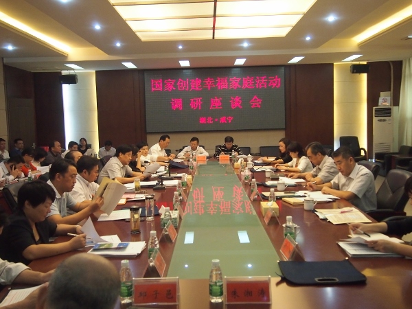 在先后召開的創建幸福家庭活動座談會上,調研組分別聽取了湖北省、咸寧市、崇陽縣、石首市、宜昌市和宜都市開展創建幸福家庭活動情況匯報。在座談討論中,趙炳禮理事長對湖北省以及咸寧市、崇陽縣、石首市、宜昌市和宜都市的創建幸福家庭活動給予了充分肯定,認為湖北省創建活動搞的有血有肉,有聲有色,提供了很多好的經驗。他指出,創建幸福家庭活動把黨的全心全意為人民服務的思想貫徹到實際行動中,一直同中央的要求和大局緊密結合。創建活動中的家庭建設是社會建設的一個基礎工程,是增進和實現人民幸福“中國夢”的一個重要方面,各級黨委政府要充分重視起來。創建活動試點地區要嘗試把失獨家庭、特殊家庭的檔案建立起來,針對每戶的具體情況去幫扶,個性化解決這些特殊家庭遇到的困難。