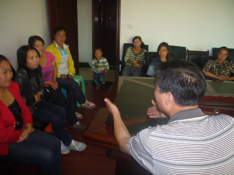 2013年6月4日平正仡佬族鄉計劃生育協會專職副會長徐飛同志召集23位貧困母親召開座談會