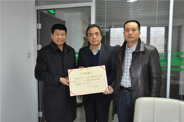 趙炳禮向北京通山商會頒發了《捐贈證書》。