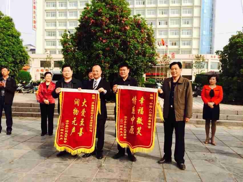 洛寧縣計生協分別向中國人口福利基金會和多美滋嬰幼兒食品有限公司贈送錦旗