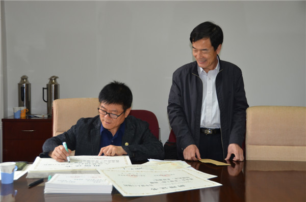 葛振江副秘書長為捐贈單位書寫捐贈證書