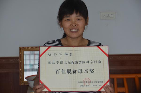 功夫不負(fù)有心人,到2000年她家的茶葉已經(jīng)成園,但茶葉是一種高投入才能高產(chǎn)出的經(jīng)濟(jì)作物,施肥、打藥都要提前花錢投資。到2000年春,家底薄的她已經(jīng)負(fù)債累累,連種地的種子和茶葉施肥所用的化肥都買不起,該借的地方都借了,信用社還有舊帳未還而貸不到款,怎么辦呢?眼看著她奮斗幾年的勞動(dòng)成果就要付諸東流。正當(dāng)她苦苦發(fā)愁,求借無門的時(shí)候,村計(jì)生協(xié)會(huì)上門給她帶來了好消息:國家實(shí)施“幸福工程”項(xiàng)目,呂家坳村被列入了項(xiàng)目試點(diǎn)村,她成了幫扶對(duì)象,可以向她提供2000元無息項(xiàng)目款。領(lǐng)到了這筆“救命錢”后,她用這筆錢買回了肥料和農(nóng)藥,及時(shí)追上了茶葉肥。在她和丈夫的精心管理下,當(dāng)年她家的茶葉收入就達(dá)到了畝平800元,一年有了將近3000元的純收入。