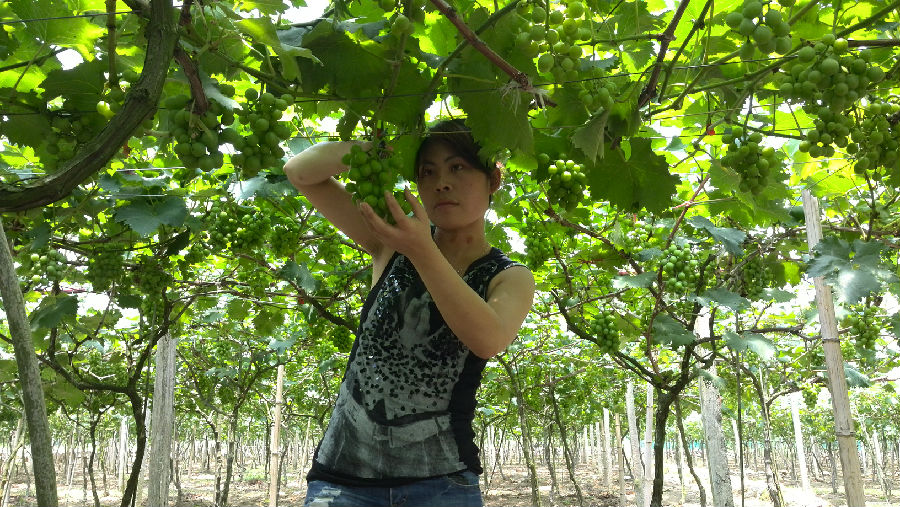 在各項優惠政策的鼓舞下,2010年,她開始自主創業,在他人的推薦下,種植了20畝大棚巨峰葡萄,現在,一年收入可達十幾萬元。