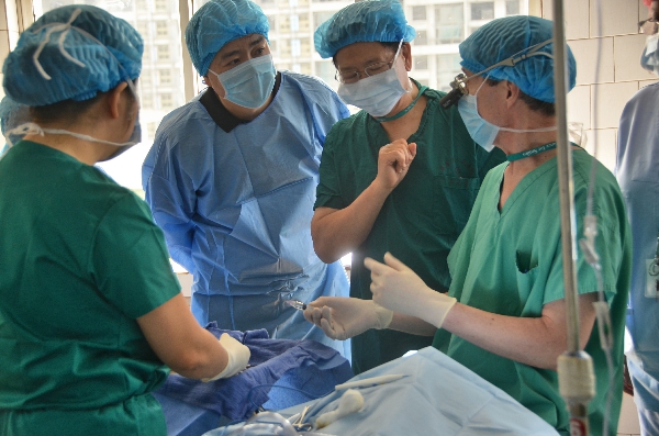 在畢節(jié)期間,張暉秘書長還慰問了美國“微笑聯(lián)盟”醫(yī)療隊,并看望手術兒童。張秘書長對醫(yī)療隊表示,醫(yī)療無小事,安全第一位。在“幸福微笑”手術室,張暉秘書長認真觀摩手術,了解手術進展情況,他對醫(yī)生嫻熟的手法表示贊賞。他感謝各位遠道而來的國際醫(yī)療隊成員對中國貧困兒童的關愛,相信他們精湛的醫(yī)術將會為更多的孩子帶來笑容。