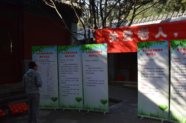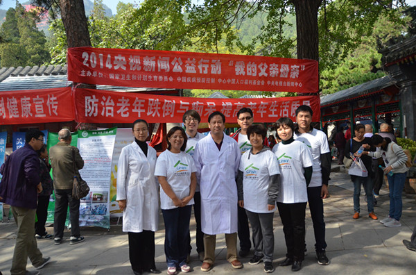 2014年10月2日重陽節(jié),中國人口福利基金會(huì)聯(lián)合國家衛(wèi)生計(jì)生委、央視新聞中心、中國疾病預(yù)防控制中心、北京老年醫(yī)院等機(jī)構(gòu)在北京八大處公園靈光寺舉行了2014央視新聞公益行動(dòng)“我的父親母親”—“預(yù)防老人跌倒”主題公益活動(dòng),并以“關(guān)愛老人,從每一步開始”為宣傳口號(hào)。當(dāng)天,人基會(huì)邀請(qǐng)了北京老年醫(yī)院的醫(yī)生針對(duì)老年跌倒、老年癡呆等老年病問題開展了免費(fèi)義診,通過老年跌倒風(fēng)險(xiǎn)篩查、老年癡呆風(fēng)險(xiǎn)篩查對(duì)現(xiàn)場(chǎng)老年人進(jìn)行評(píng)估、評(píng)測(cè);通過提供免費(fèi)的科普宣講,提高對(duì)老年人跌倒現(xiàn)象、老年癡呆、心腦血管疾病的預(yù)防。活動(dòng)現(xiàn)場(chǎng),醫(yī)生通過幾個(gè)簡單的測(cè)試方法對(duì)老年人在跌倒風(fēng)險(xiǎn)、老年癡呆風(fēng)險(xiǎn)上進(jìn)行篩查。