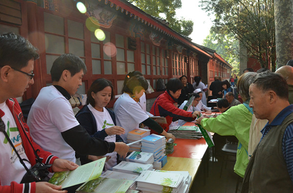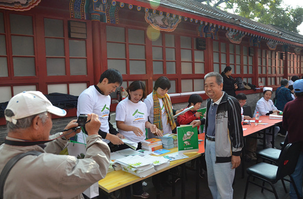 人基會(huì)工作人員在為老年朋友發(fā)放免費(fèi)宣傳資料