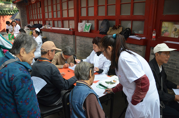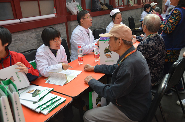 北京老年醫(yī)院醫(yī)生在為老年人進(jìn)行免費(fèi)義診
