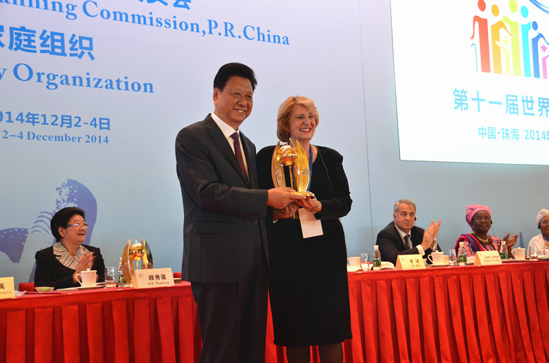 中國人口福利基金會獲世界家庭組織頒發榮譽獎杯