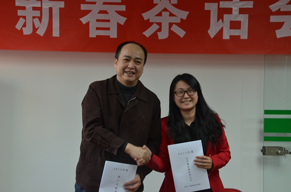 葛振江副秘書長宣讀《關(guān)于表彰2014年度優(yōu)秀共產(chǎn)黨員、優(yōu)秀員工及先進(jìn)社會工作者的決定》,趙本志、牛艷平、劉麗容、李士強(qiáng)、李曉琳、宋宏云分別榮獲“優(yōu)秀共產(chǎn)黨員”、“優(yōu)秀員工”和“先進(jìn)社會工作者”榮譽(yù)稱號。吳小兵、楊辰、佟鳳獲得年度單項(xiàng)獎。趙炳禮理事長、張暉秘書長向先優(yōu)個人和單項(xiàng)獎獲得者頒發(fā)證書。俞華副秘書長就人基會新的工資制度、員工職級確定以及2015年部門績效指標(biāo)等事項(xiàng)進(jìn)行了說明。隨后,張暉秘書長與各部門部長簽訂《2015年度黨風(fēng)廉政建設(shè)責(zé)任書》和《2015年度部門目標(biāo)責(zé)任書》。員工們圍繞2014年的工作、學(xué)習(xí)、生活等內(nèi)容座談發(fā)言,分享感受。會議簡單而熱烈,處處充滿溫情感動。