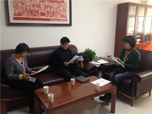 姚英秘書長認真翻看我會“幸福工程20周年紀念會”的籌備方案